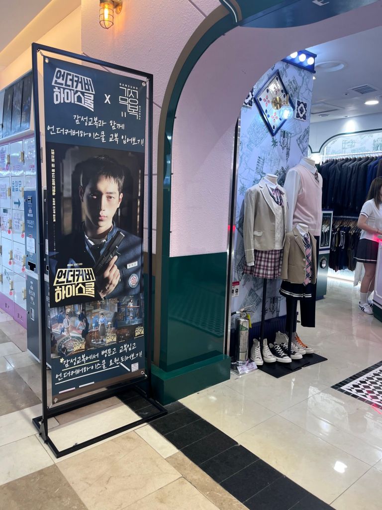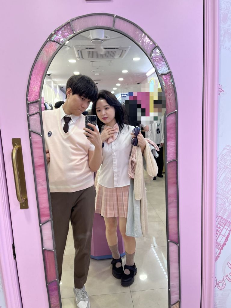 Wearing a Korean-style school uniform is one of the most popular experiences before entering the park.